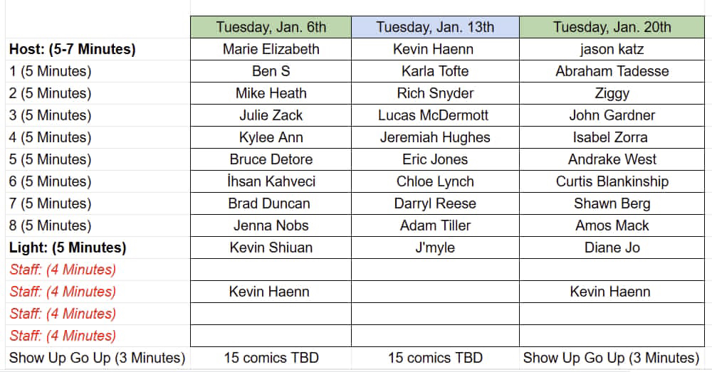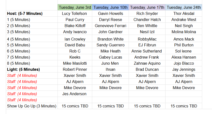 - Grow Your Craft – Hone your material in front of a live, supportive audience every week.